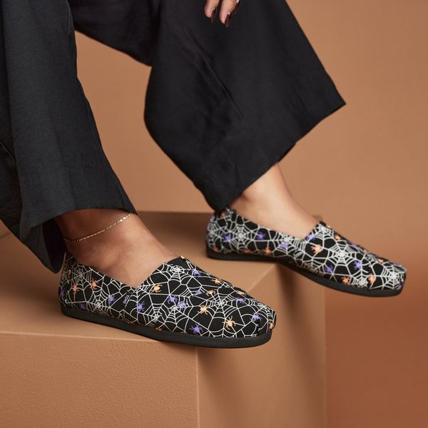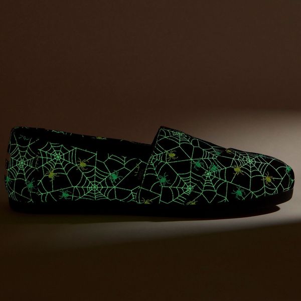 Black Glow In The Dark Spiders, 10021668TOMS run true to size and are available in medium width only. We recommend ordering the size you normally wear. If you are typically in between sizes, we recommend going with the smaller one since TOMS will stretch slightly as you break them in.