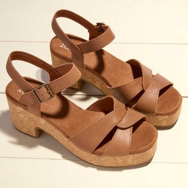 The heeled sandal of your dreams. With a cork-wrapped block heel, wide interwoven straps and luxe leather uppers, Isla is the perfect walkable platform. Dress them up for the office or down for effortless-chic everyday wear. Leather upper. TOMS leather products support responsible manufacturing via the Leather Working Group.