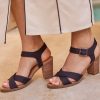 Majorca Ankle Strap Heeled Sandal Black Woven Melange